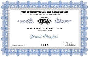 Auf nur drei Ausstellungen hat er bei uns sensationell den höchsten persönlichen Titel "Supreme Grand Champion" geholt (dieser beinhaltet insgesamt sechs Titel: 1. Champion, 2. Grand Champion, 3. Double Grand Champion, 4. Triple Grand Champion, 5. Quadruple Grand Champion, 6. Supreme Grand Champion)