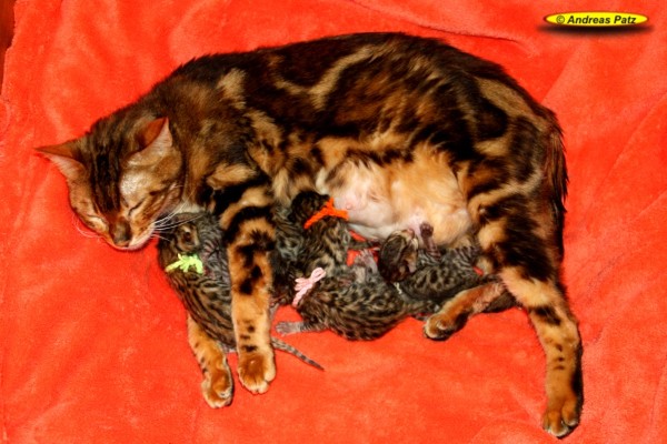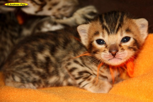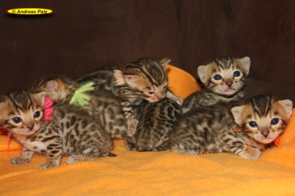 Mai 2015 - Bengalkitten von Wilma Hier die aktuellen Bilder unserer Bengalkitten vom 04.Mai 2015. Diese Kitten werden alle kleine Fernseh-Stars. Ein Kamerateam eines großen deutschen TV-Senders hat die Geburt und die ersten Tage der Kleinen gefilmt. Wir informieren euch rechtzeitig wo und wann der Beitrag ausgestrahlt wird. Wenn Ihr Interesse an einem oder zwei Bengalkitten von uns habt, nehmt bitte über unser Kontaktformular, per Mail an Info@Bengal24.de oder telefonisch Kontakt mit uns auf. Telefon: 02771/320250 (14:30 - 20:00 Uhr)